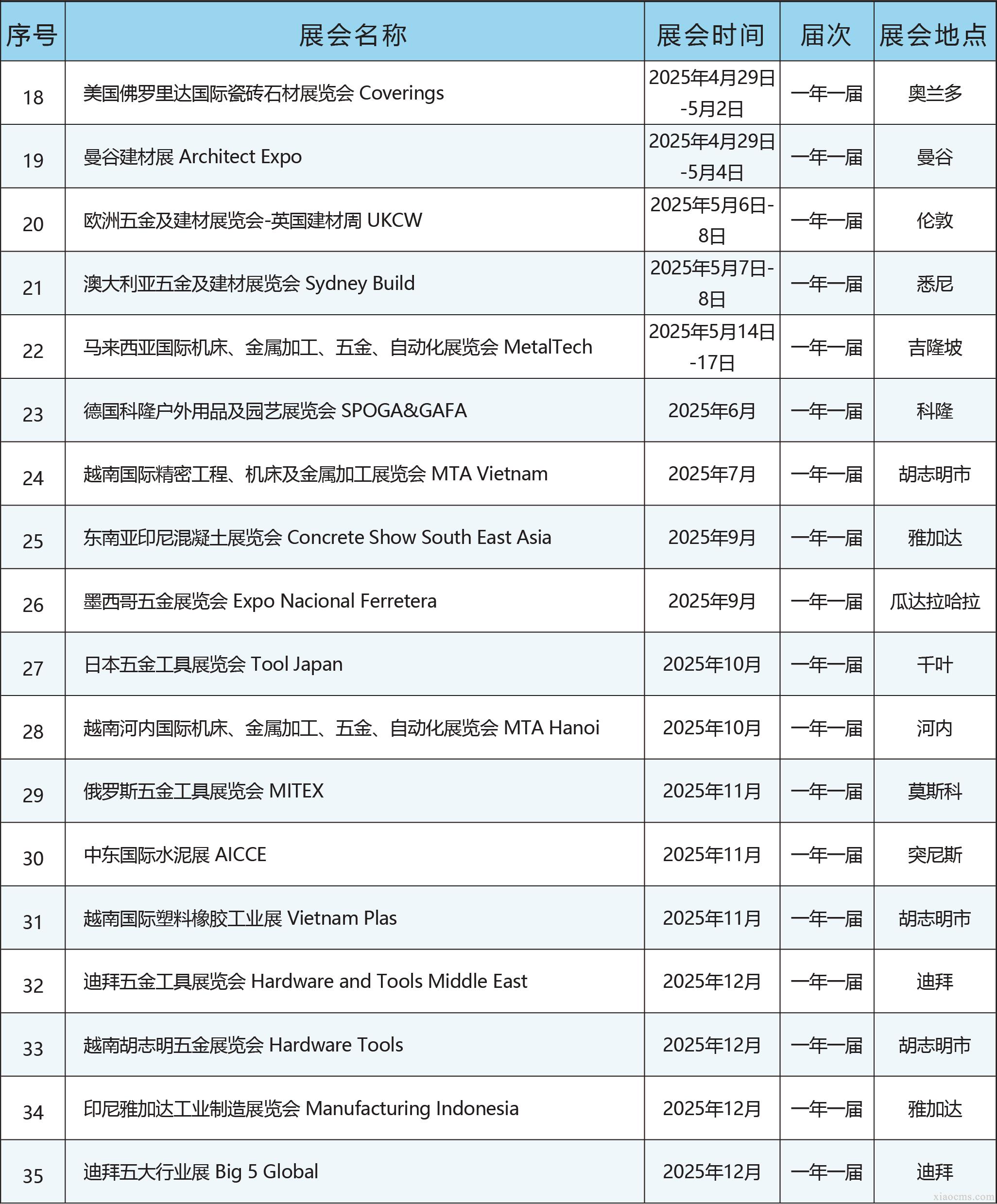 中媒2025年全球五金及建材行業(yè)展會計劃