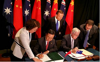 澳大利亞貿(mào)易及投資部部長(zhǎng)安德魯?羅伯 Andrew Robb與中國(guó)商務(wù)部部長(zhǎng)高虎城,于6月17日在堪培拉分別代表兩國(guó)正式簽署《中國(guó)人民共和國(guó)政府和澳大利亞政府自由貿(mào)易協(xié)定》。中澳自貿(mào)協(xié)定談判與2005年4月啟動(dòng),歷時(shí)十年。2014年11月,中國(guó)國(guó)家主席習(xí)近平對(duì)澳大利亞進(jìn)行國(guó)事訪問,與澳大利亞總理阿博特共同確認(rèn)并宣布中澳自貿(mào)協(xié)定談判實(shí)質(zhì)性結(jié)束。此次協(xié)定正式簽署,為兩國(guó)分別履行各自國(guó)內(nèi)批準(zhǔn)程序、使協(xié)議盡快生效奠定了基礎(chǔ)。