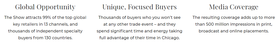 美國芝加哥家庭用品展IHA始辦于1928年,是由年零售總額達(dá)2千多億美元的美國全國家庭用品制造商協(xié)會(huì)〈International Housewares Association〉主辦,展會(huì)為全美最大、最專業(yè)的家庭用品展會(huì),位列美國前10大展覽會(huì)之一,也是世界上最大、最具有影響力的家庭用品及家用電器專業(yè)博覽會(huì)之一,過去數(shù)十年,在主辦單位的經(jīng)營之下,2013年吸引超過2137家美國及43個(gè)美國以外廠商參展,和來自美國超過5.5萬人次及其它125個(gè)國家5000人次的買家前來參觀采購。美國芝加哥家庭用品展在美國前25大零售商中95%至少會(huì)派出一人參觀此展會(huì),在參觀的買家中來自許多通路商,包括批發(fā)商和零售商及不同的零售通路,還包括快速增長的專業(yè)頻道、大型賣場、代理商等,及在這市場上是世界專業(yè)級(jí)家居用品的買家,重要的買家包括如Wal-Mart、Allied、TargetStore、Lmex、KitchenAid、SpA、Lowe' s、Macy's…海爾集團(tuán)及韓國電視購物頻道等。